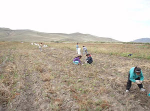 die Felder und halfen bei der Ernte, die Mädchen wuschen die