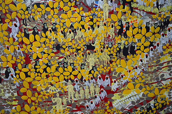 Sur la toile The World Beyond 15, un arbre gigantesque accueille êtres