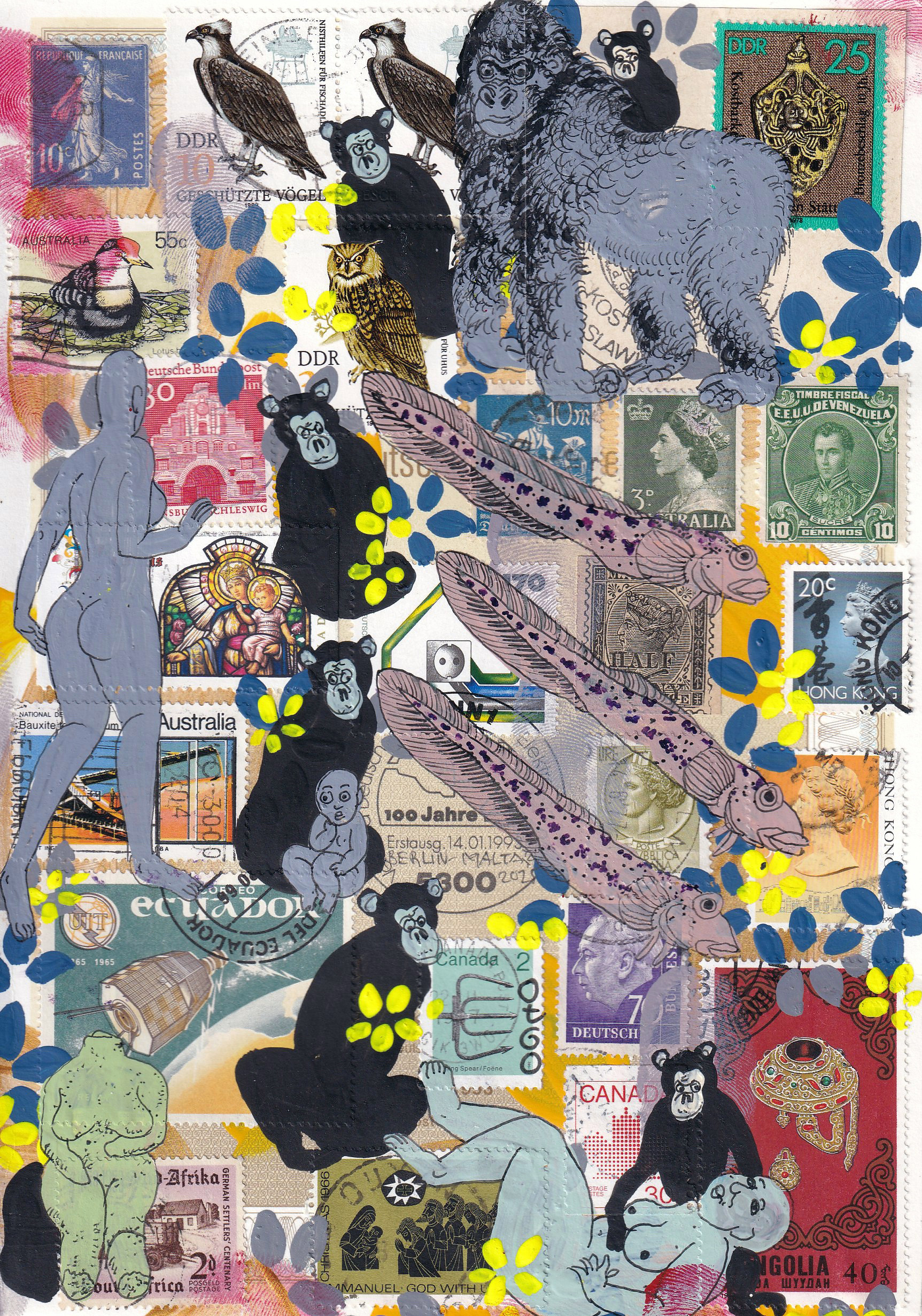 acryl on original Stamps, each measuring 210 by 148 mm (A5)