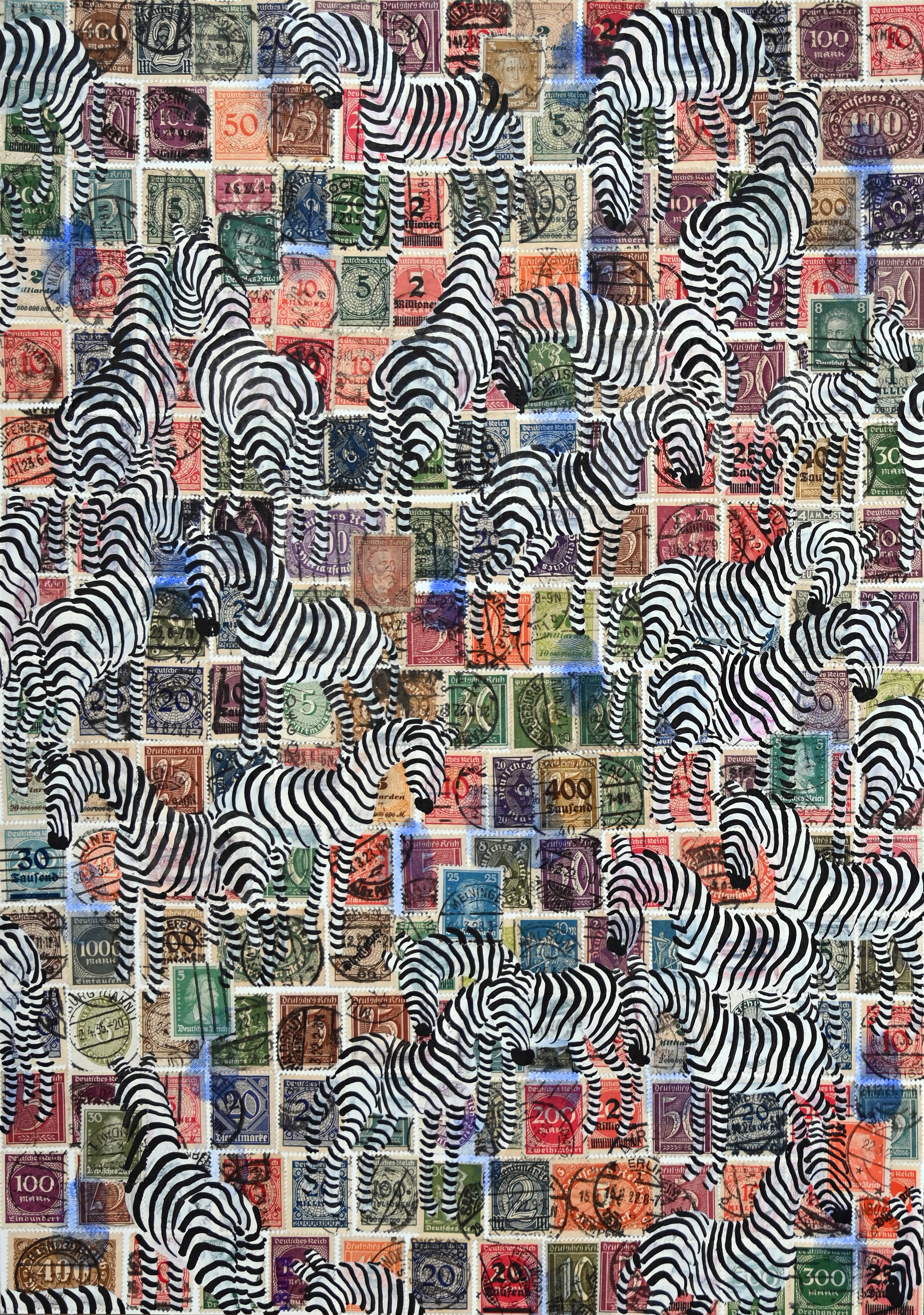 Cabinet of Curiosities Zebras 3/30 by OtGO 2024–2025 ink & acryl